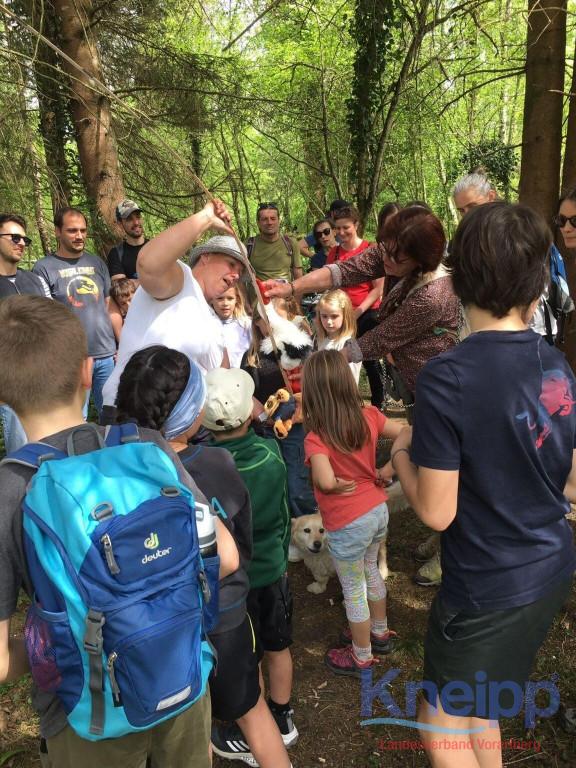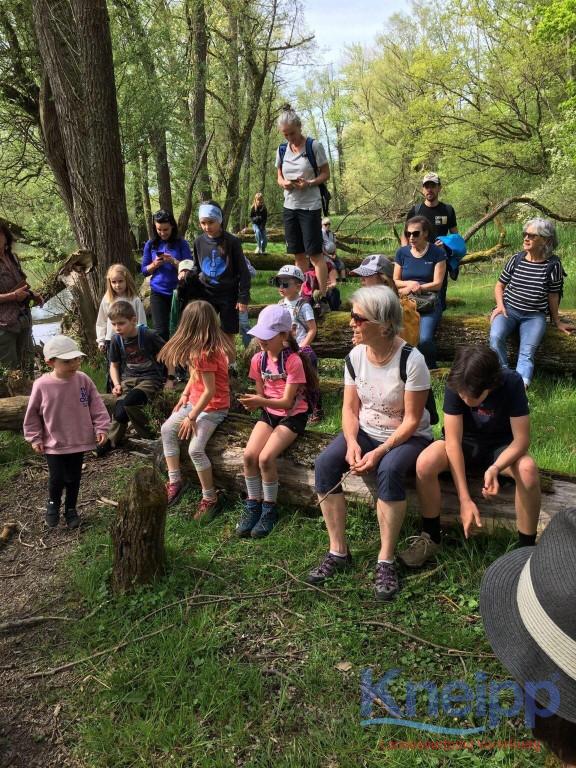 Fr. Mag. Agnes Steininger Biologin und Biberbeauftragte, nahm Klein und Groß mit in die Welt der Nager zur Familienwanderung am 13.4.2024. Vom Ausgangspunkt Rheinholz Parkplatz ging es am Ufer des alten Rheins zu den Biberbauten. Zahlreiche Geschichten um und über den Biber und dessen Familienverbund, ließen Kinderaugen und Biber-Wissen grösser werden.